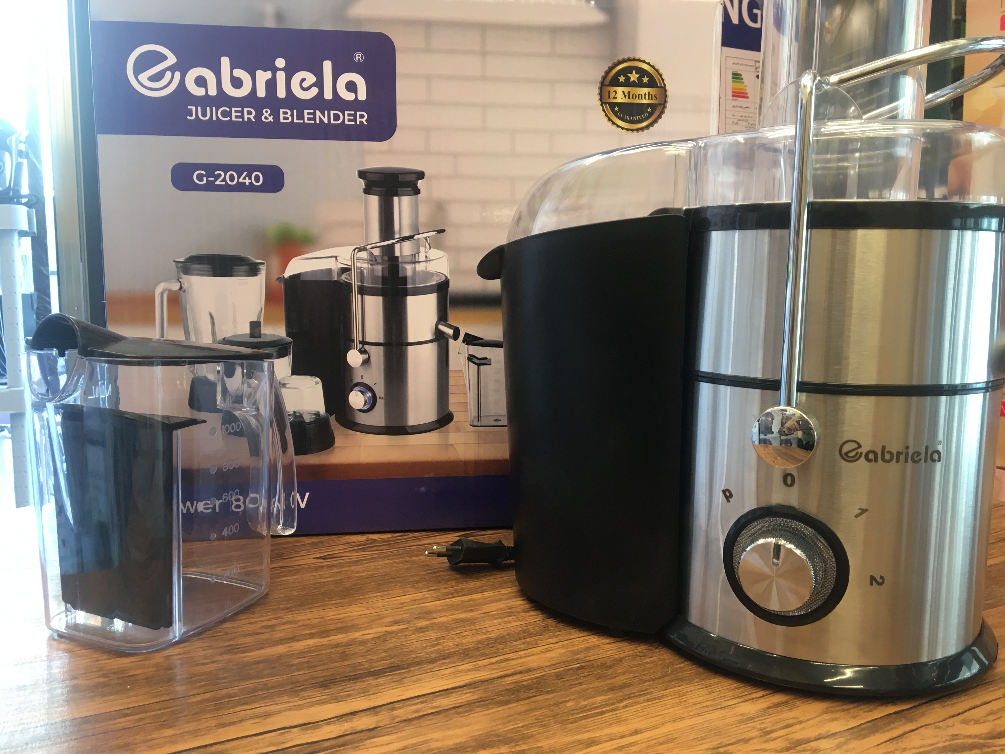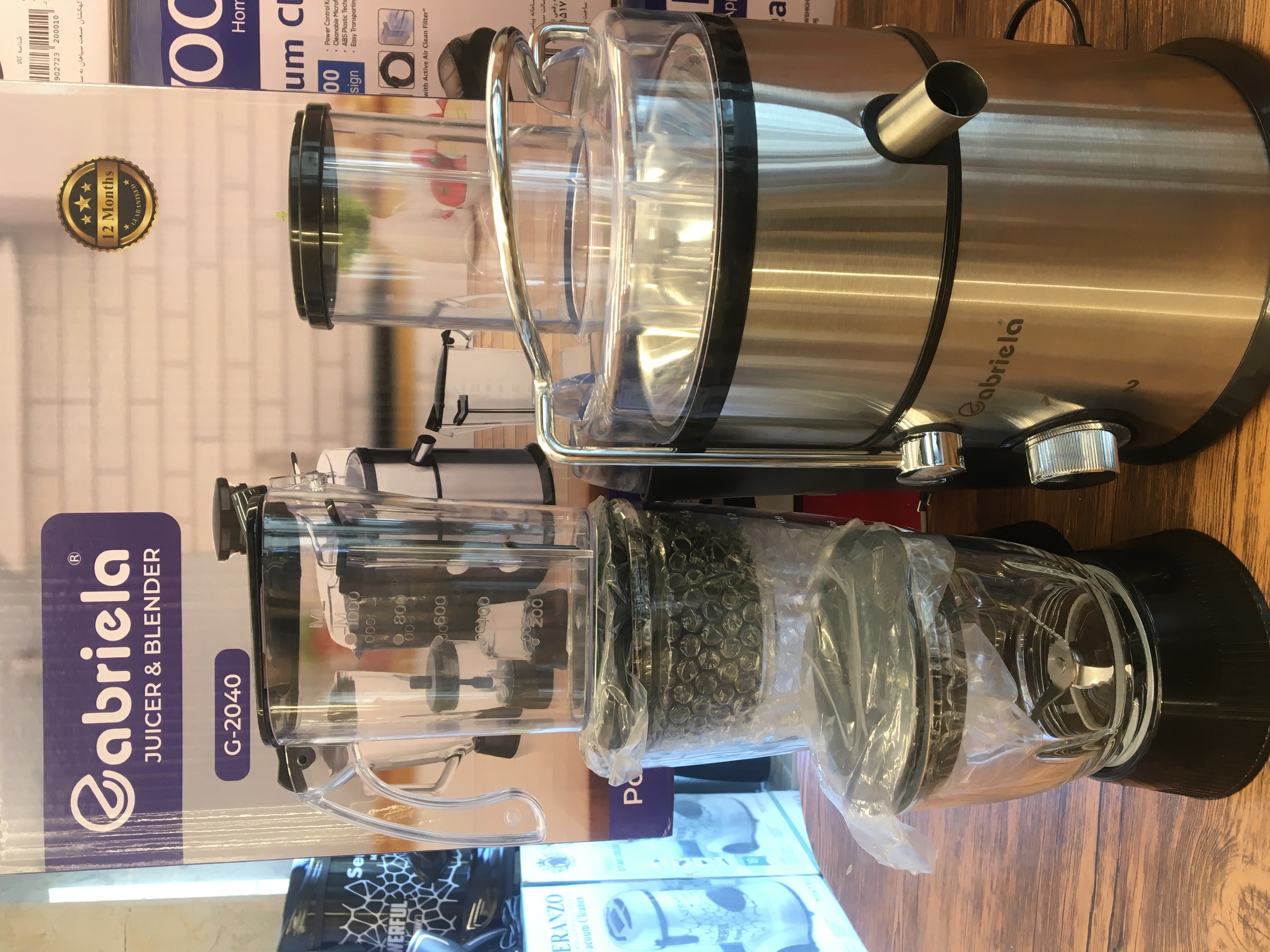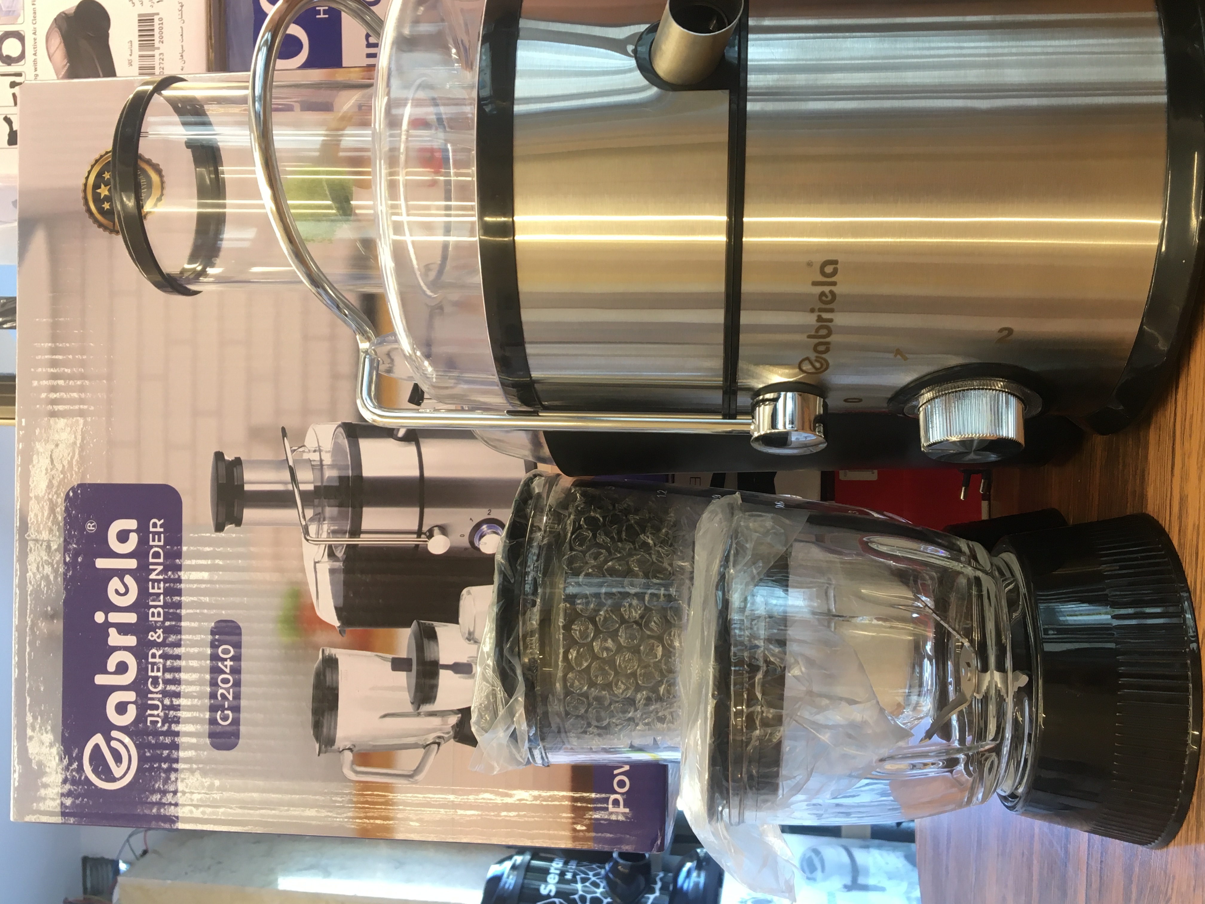 2سرعته با کنترل پالسی فناوری استارت آهسته عمر طولانی تر موتور ظرف تفاله بزرگ 2.2 لیتری تیغه وسبد فیلتر استیل ضد زنگ بدنه وبازوی قفل شونده از جنس استیل ضد زنگ قفل ایمنی پارچ آبمیوه 1 لیتری پارچ مخلوط کن 1.5 لیتری آسیاب وخرکن شیشه ای