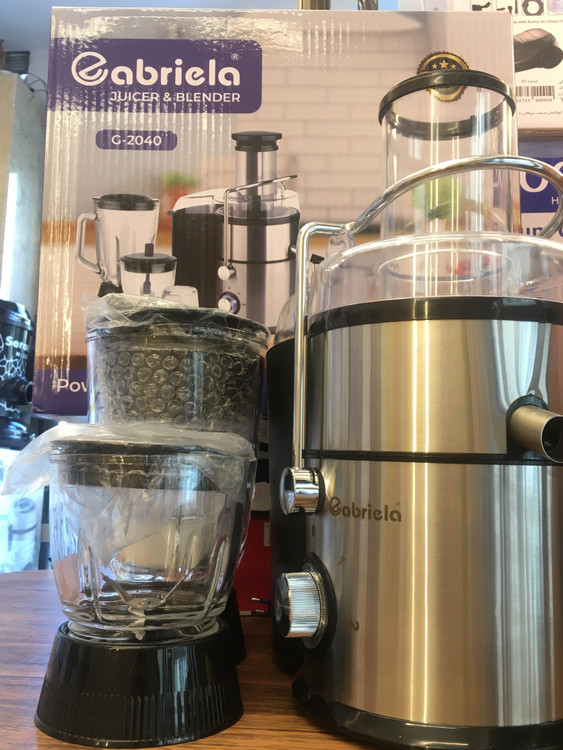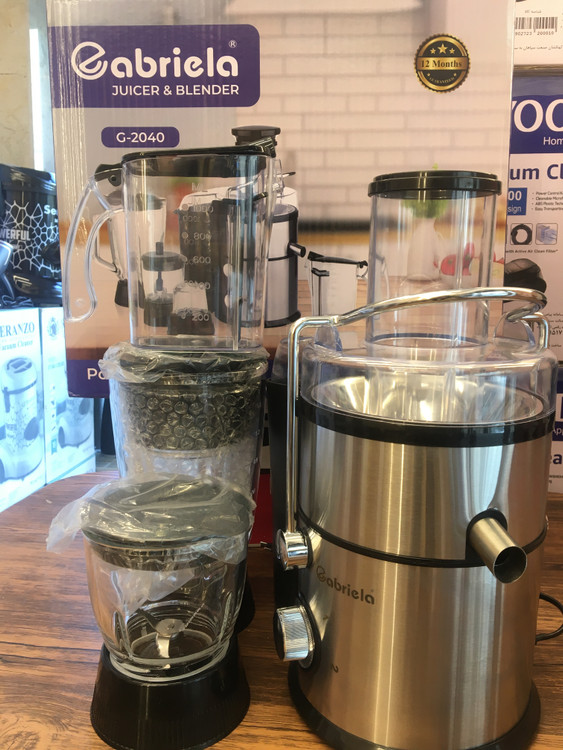 2سرعته با کنترل پالسی فناوری استارت آهسته عمر طولانی تر موتور ظرف تفاله بزرگ 2.2 لیتری تیغه وسبد فیلتر استیل ضد زنگ بدنه وبازوی قفل شونده از جنس استیل ضد زنگ قفل ایمنی پارچ آبمیوه 1 لیتری پارچ مخلوط کن 1.5 لیتری آسیاب وخرکن شیشه ای
