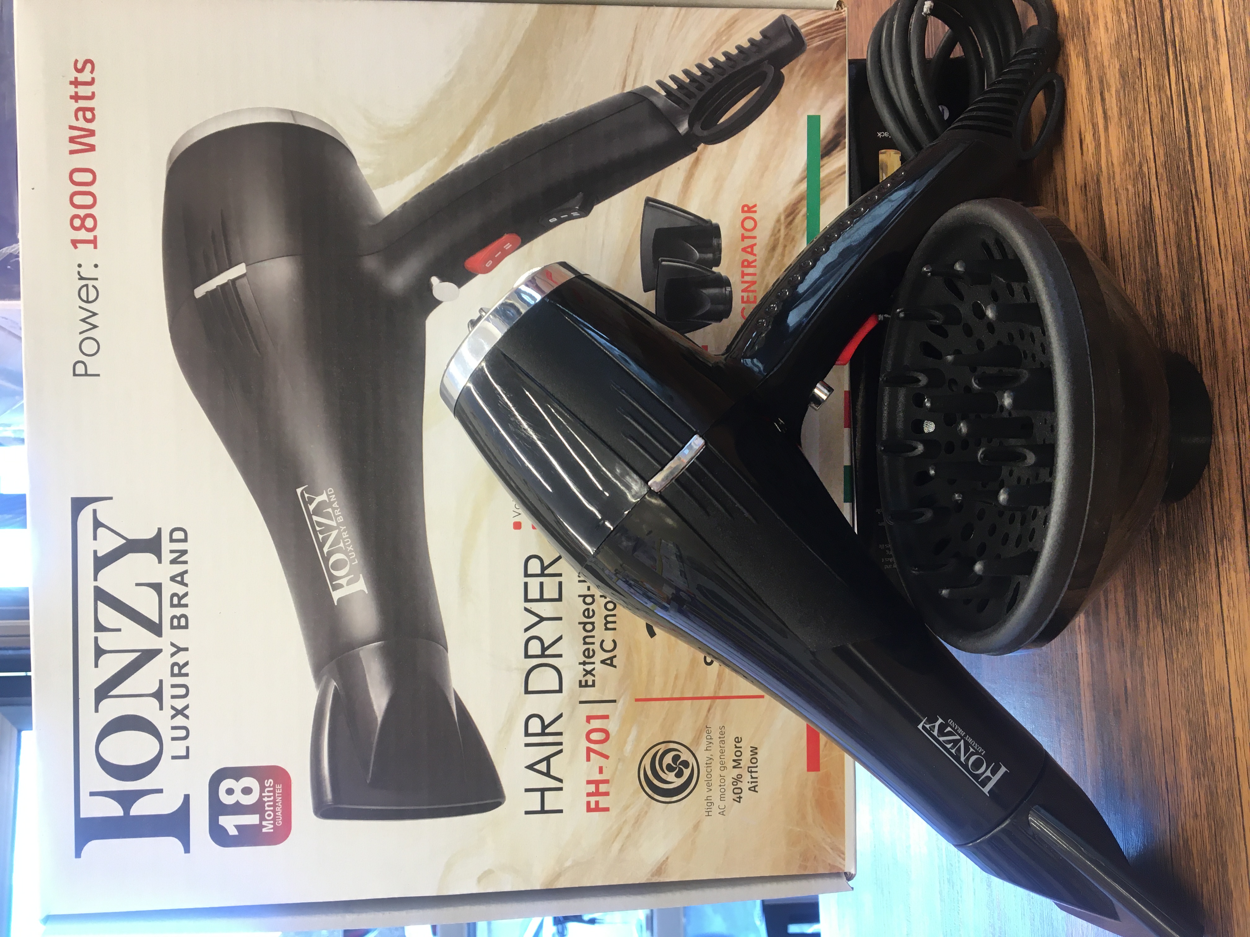 سشوار فونزی 1800وات دوسرعت و دوانتخاب باعملکرد هوای سرد موتور ac با طول عمر بالا با متمرکز کننده محافظت در برابر گرمایش بیش از حد سشوار قدرتمند مد روز